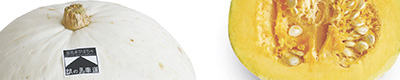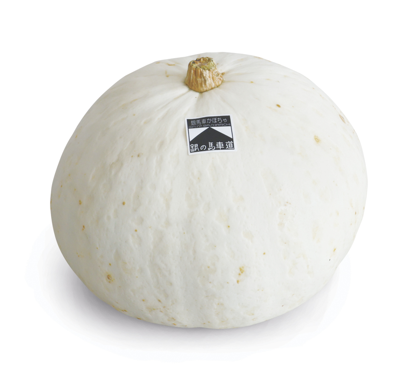 姫路市の飾磨港と朝来市の生野銀山を結ぶ「銀の馬車道」の沿線にある直売所や道の駅では、10月初旬から「銀馬車かぼちゃ」が並びます。馬車と銀鉱石を連想させる「白爵(はくしゃく)」という白皮の品種のカボチャで、2018(平成30)年に銀の馬車道ネットワーク協議会が中心となって栽培を始めました。メロンのような香りが特徴で8月に収穫後、2カ月ほど追熟させることで糖度がさらに高くなります。素揚げや煮付けはもちろん、スイーツにも向いており、ホームページにプリンやフレンチトーストなどのレシピを掲載しています。(銀の馬車道ネットワーク協議会)