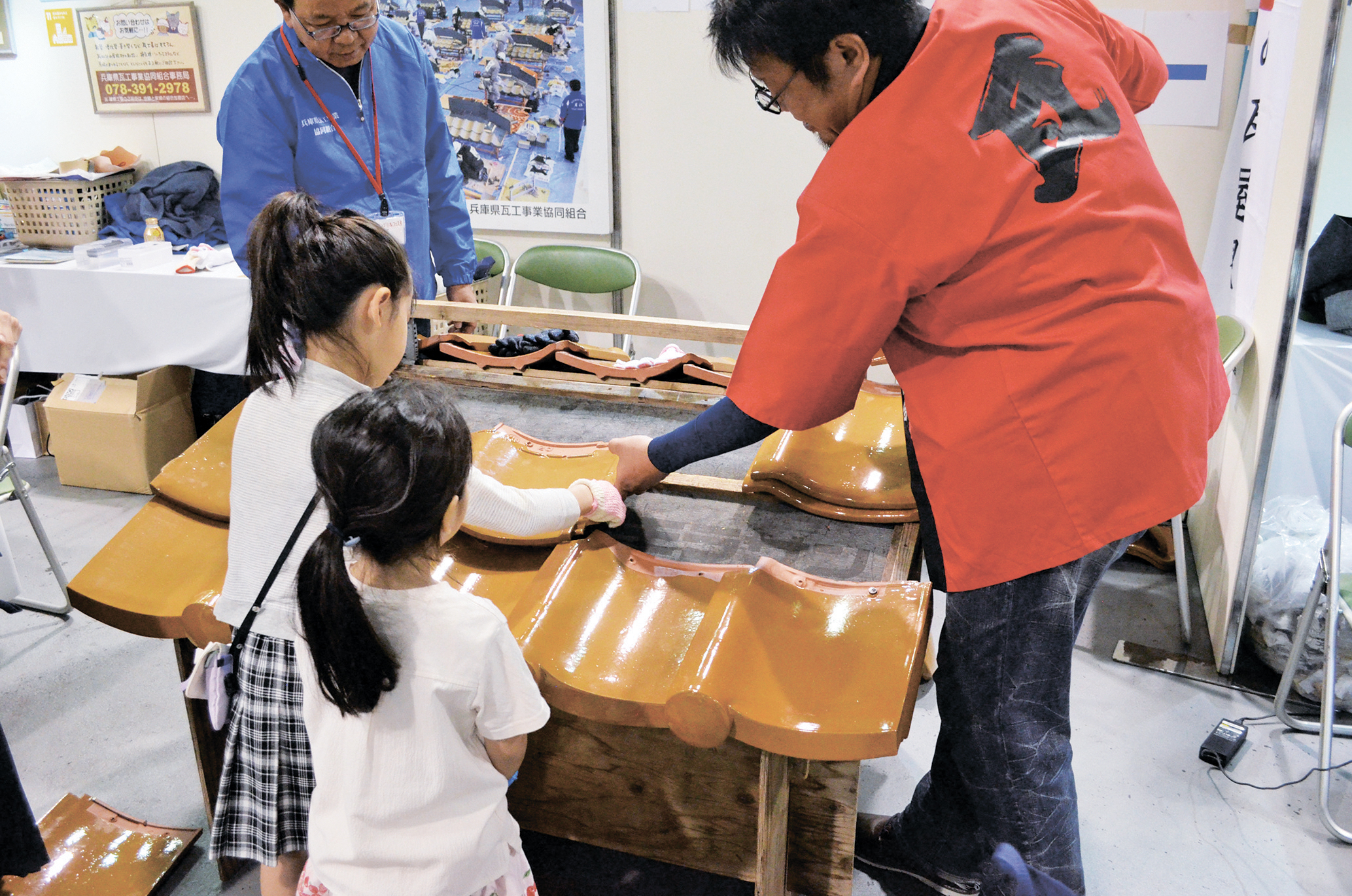 瓦ぶき体験。